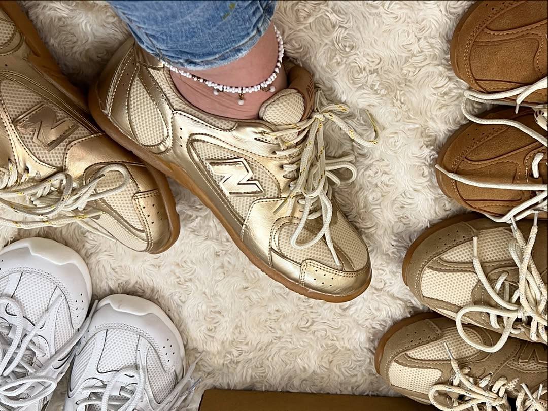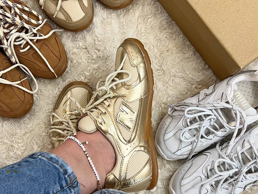 درباره کتونی نیو بالانی مدل میو میو رنگ طلایی سایز 39